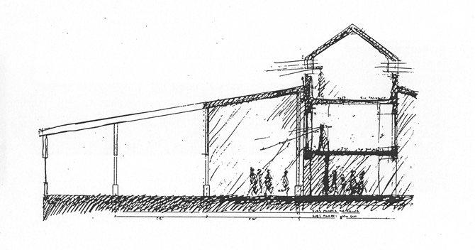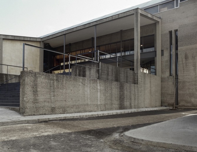 Estructura metálica y muros de hormigón lavado. Carpintería de aluminio