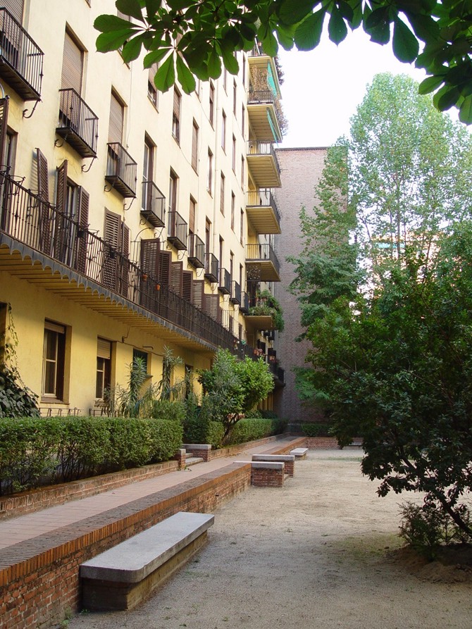 Fachada lateral del conjunto - Servicio Histórico del Colegio Oficial de Arquitectos de Madrid (COAM). Arquitectura de Madrid -