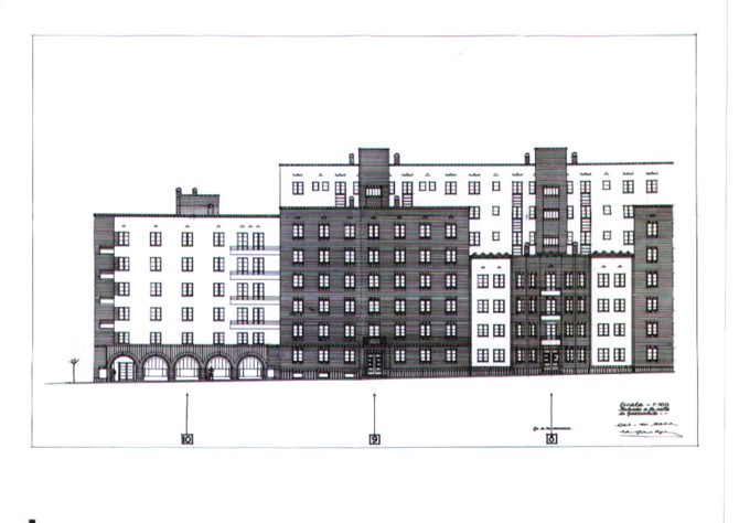 Alzado parcial - Servicio Histórico del Colegio Oficial de Arquitectos de Madrid (COAM). Arquitectura de Madrid -