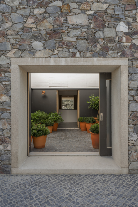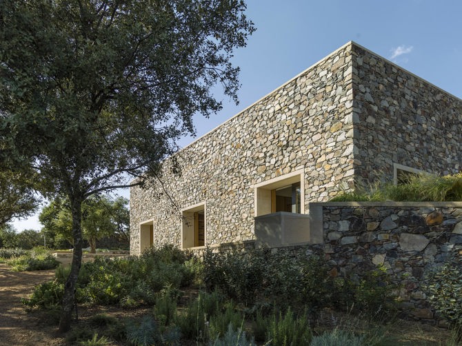 En su ajustada dimensión, la casa quiere ser un palacio para sus usuarios, afirmando este noble carácter por medio de una extrema sencillez en su organización y una rigurosa construcción tradicional de su volumen. De esta forma, al exterior, la casa se manifiesta como un sencillo volumen prismático de planta cuadrada, de dieciséis metros de lado, construida con muros de piedra cuarcita cacereña. En cada uno de los lados se disponen tres huecos de ventana, de dos metros diez centímetros, enmarcados con piedra de granito extremeño de tono cálido. En el interior se disponen nueve estancias cúbicas, de cuatro metros veinte centímetros de lado, que pueden acoger los diferentes usos de la vivienda: cuartos de estar, dormitorios, cocina y comedor. Entre estas estancias se ubican todos los espacios servidores de la casa como son los armarios y los aseos.