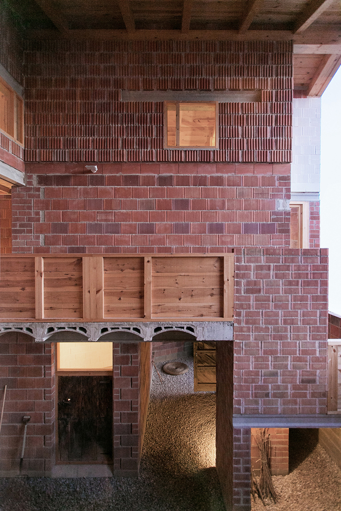 Se construye con mano de obra local y con materiales habituales de los almacenes cercanos. También se reutiliza el material generado por la obra y lo encontrado en el corral; carpinterías antiguas de casas derribadas del pueblo.