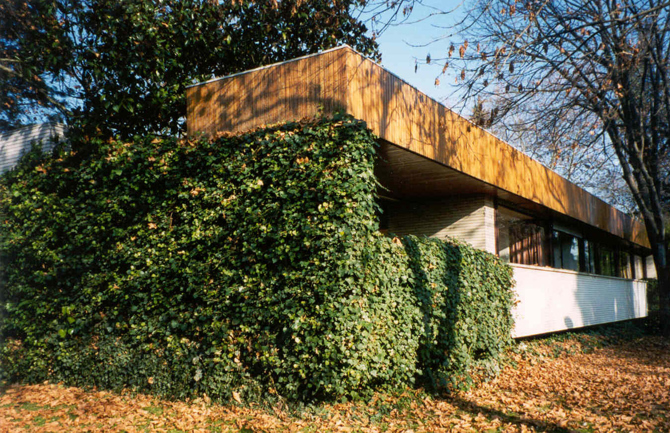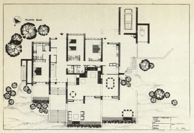 El primer proyecto redactado respondía a un concepto casi instintivo de defensa ante el entorno. El edificio, todo él proyectado en hormigón armado visto, se organizaba como un bunker, empotrado en el terreno constituyendo sus cubiertas zonas ajardinadas que se prolongaban después en bancales que rodeaban la pequeña playa y que habían de ser regados por gravedad a través de una complicada red de canalillos. Una serie de dificultades de ejecución, excavaciones importantes en roca, etc., llevó a desecharlo y buscar una solución más simple.