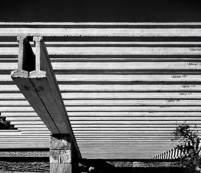 Plataformas y aleros pronunciados sujetos por dobles vigas invertidas