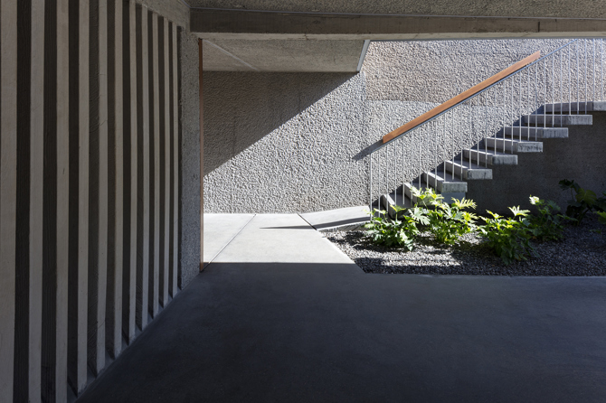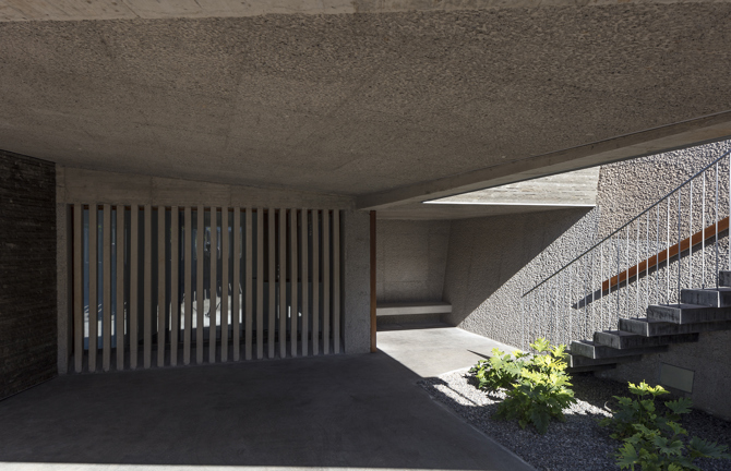 La casa MaMa, en fin, se percibe como una sucesión escalonada de muros trepando por la pendiente con diferentes grados de permeabilidad y diversa materialidad. Y en la planta baja, en su entrega con los espacios comunes, donde la vivienda se extiende hacia el exterior, se disuelven plegándose para convertirse en generosas pérgolas que dotan de sombra y movimiento a una arquitectura tan sólida como discreta.