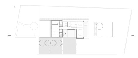 La distribución utiliza la orientación abierta hacia el suroeste para ubicar las zonas de día, reservando la parte noreste para los dormitorios. Un espacio fluido recorre toda la casa longitudinalmente, alojando las piezas de uso más polivalente: el estudio, el acceso a través de un porche-garaje. En el centro se permite disfrutar de la visión transversal de paisaje: un huerto de uso particular y la montaña lejana.
