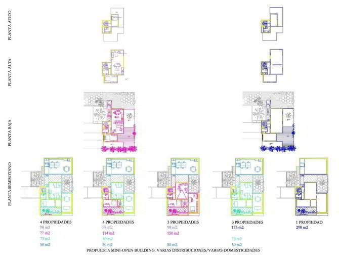 - Este proyecto, a pesar de su mínimo tamaño, quiere estar en la línea de John Habraken y la separación entre soporte y relleno, permitiendo distintas agrupaciones sociales y nuevas distribuciones sin modificar el soporte.