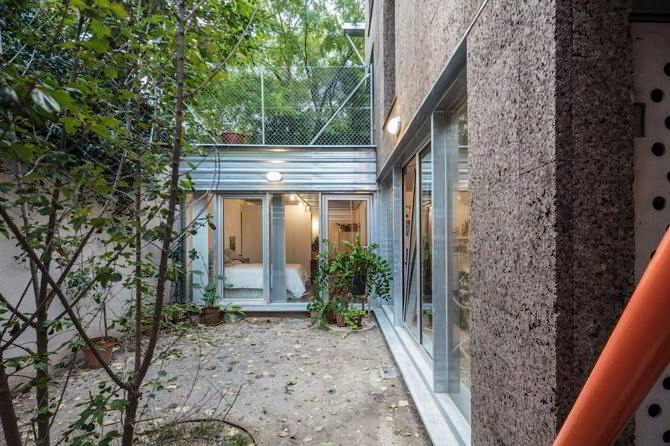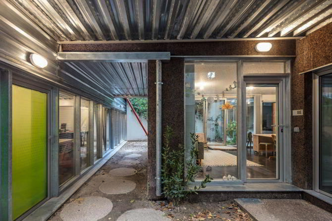 Sobre esta organización se coloca una casa industrializada de CLT forrada de corcho y con cubiertas verdes. Esta quiere ser un mini Open Building, aglutinando la escalera y los baños en un núcleo vertical para poder compartimentar las plantas lo más libremente posible dentro de su íntimo tamaño.