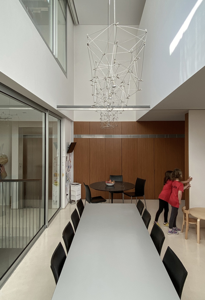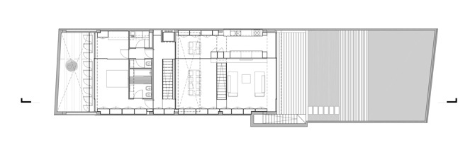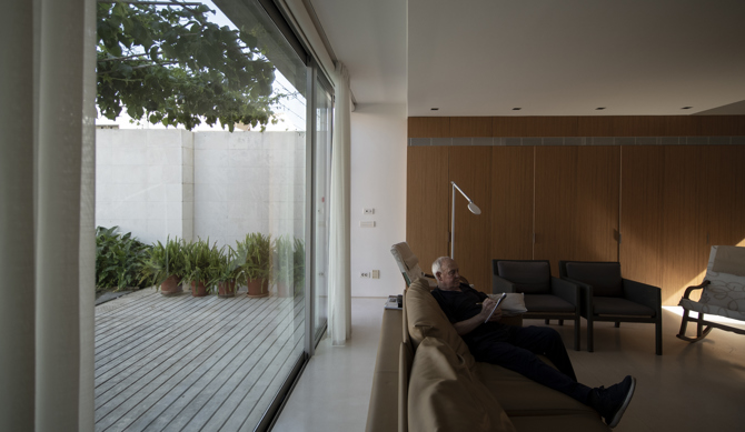 Cada una de las plantas busca conseguir el recorrido visual más largo posible, que se alarga des el patio de la calle hasta el huerto posterior, en sentido longitudinal, y que recorre las medianeras como límite del espacio habitable. La suavidad de sus acabados y materiales, además de toda la superficie acristalada pretenden un estar y un vivir amable.