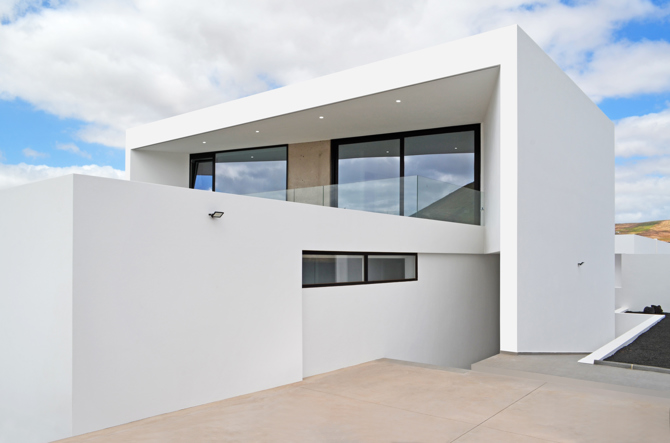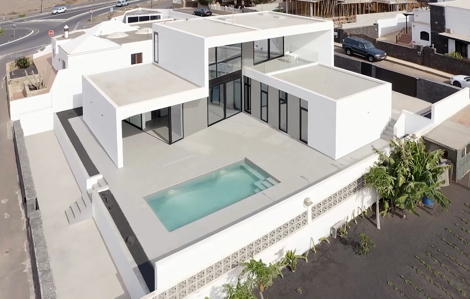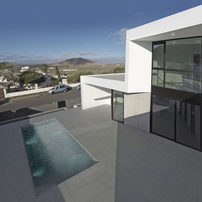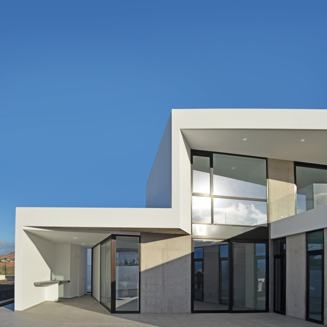 La edificación da una respuesta más hermética al viento dominante de Lanzarote (norte) y se abre al sol, reconociendo una obsesión por la luz natural y por los juegos de escala.