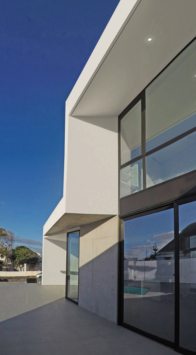 La vivienda es en sí una gran ventana a la que asomarte, que inhala el paisaje volcánico y captura atardeceres. Se apropia del entorno con una sutil relación entre interior y exterior, brindando ricas experiencias espaciales, perspectivas, trasparencias y reflejos.