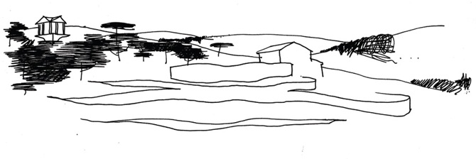 Aquel espléndido paraje estaba presidido por una pequeña masía en muy mal estado y situada como casi siempre en el mejor lugar y orientada de la mejor manera. Su tamaño impedía que pudiera acoger el nuevo programa, pero el proyecto no dudó en conservarla y apropiarse de ella, de usarla como parte integrante de la nueva propuesta y de rendirle homenaje como testimonio del pasado.