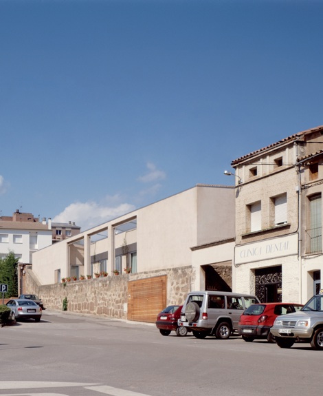 Todo el recinto había quedado rodeado por el crecimiento paulatino del pueblo y el nuevo edificio quería contribuir a dar continuidad a los planos de fachada de las casas entre medianeras vecinas y que definían con tanta precisión el vacío de las calles. Incomprensiblemente las Ordenanzas obligaban a levantar un edificio aislado y el proyecto pretendió superar esta contradicción.
