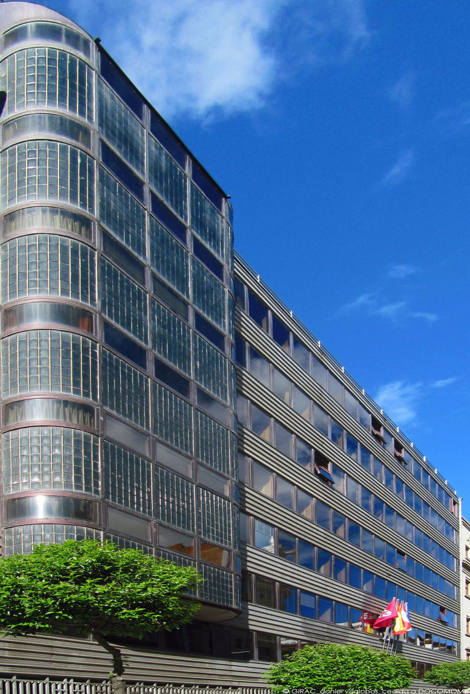 Casa Sindical de León, fachada de metal y vidrio - Javier Vellés -