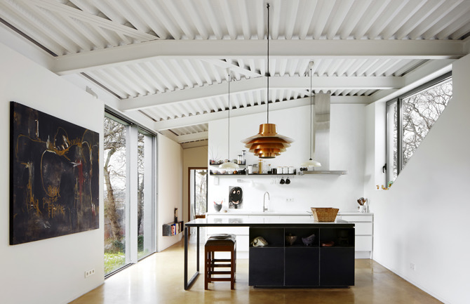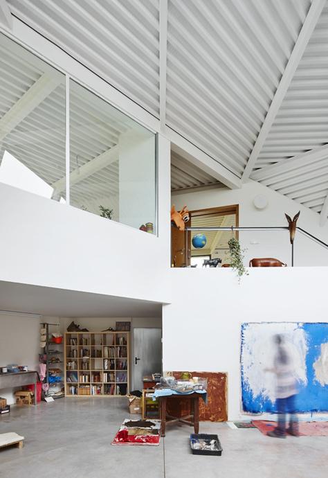 La fusión entre la casa y el atelier se produce de manera que cada espacio tiene doble orientación, iluminación y ventilación. La posición y el dimensionamiento de las aberturas se han determinado utilizando modelos virtuales y físicos para proporcionar las mejores condiciones de iluminación natural y vistas requeridas para cada espacio específico. Esto es fundamental en el taller de los artistas. La estrategia formal, que proporciona una iluminación y ventilación óptimas, se combina con la implantación de una manta de aislamiento térmico continuo y un suelo radiante de baja temperatura.