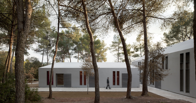 Los recorridos exteriores adaptados y los pasos entre los diferentes volúmenes permiten la circulación entre ellos, agrupando así las entradas y facilitando el control por parte de los monitores.