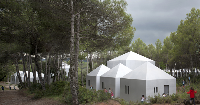 La fragmentación volumétrica en pequeñas unidades autónomas permite graduar el número de usuarios y minimizar los costes de mantenimiento y vigilancia, a la vez que permite configurar un sistema con la colonia al completo. La unidad se propone como referente, arquetipo e imagen del imaginario del mundo de la infancia: pequeñas casitas, pueblo, relación con el bosque, los caminos y lo natural y, que, en el futuro, permitiría una fácil ampliación o expansión del propio sistema.