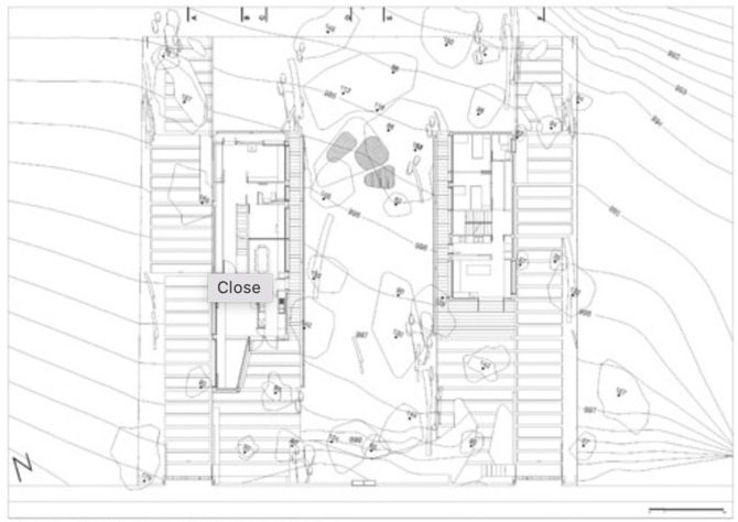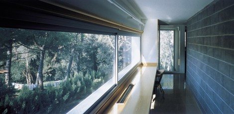 El proyecto empezó con la elección del solar. Desde esta primera visita, el bosque se fue convirtiendo a lo largo de todo un año en nuestro refugio. Teníamos un encargo para una gran casa pero decidimos hacer una casa en dos: una casa porque comparten un corredor de 10 m de ancho que se sitúa entre las dos y al cual miran los balcones de ambas casas, un espacio donde el bosque de la riera, casi tan salvaje como nos lo encontramos el primer día que visitamos el sitio, penetra en el solar.