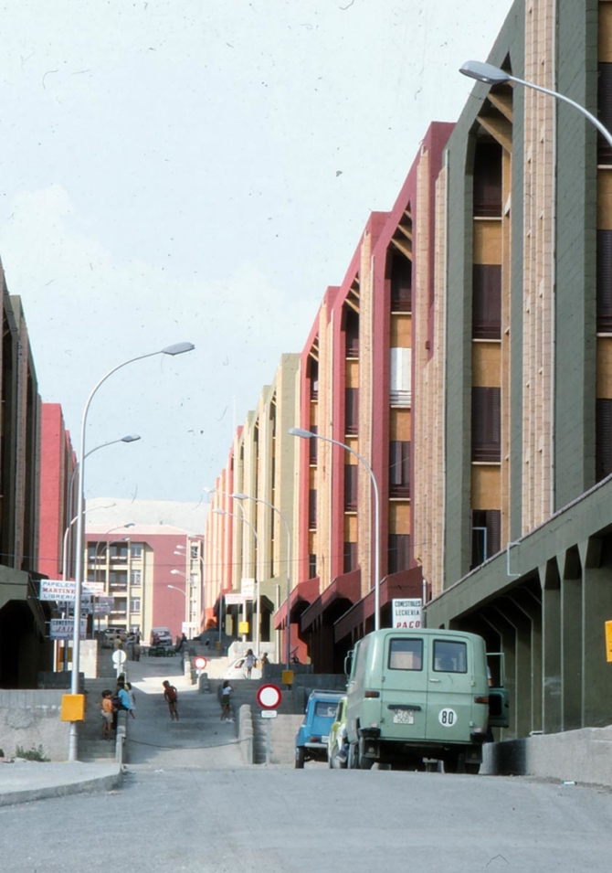 Esta zona de viviendas unifamiliares se apoya compositivamente en una cadena de bloques que la limitan posteriormente, acento este con el que se consigue no desvincular tan radicalmente esta zona del conjunto al cambiar la tipología de vivienda. El total de estas viviendas, 192 bloques y 112 unifamiliares, se distribuyen en cinco sectores, que se corresponden con las cinco fases de actuación.