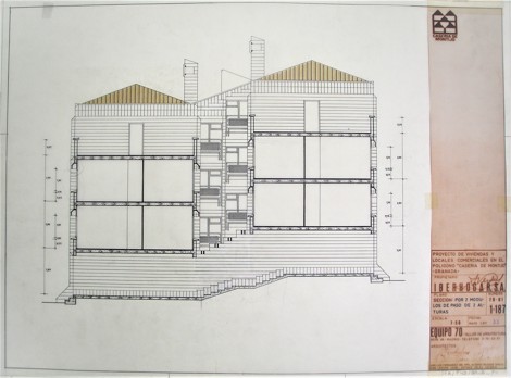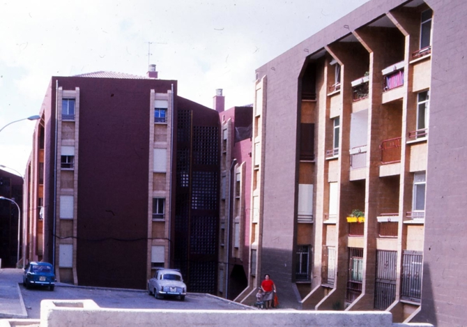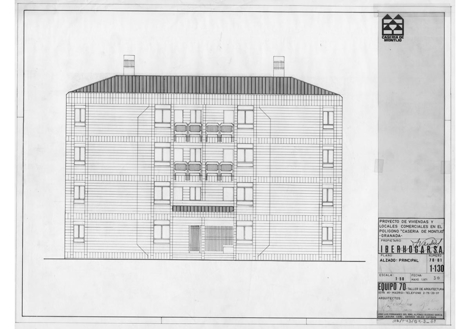 El trazado urbano y el diseño de las viviendas fueron llevados a cabo paralelamente en el tiempo, ejerciéndose entre ambos una interacción que permitió llegar a la solución que se presenta. Se huyó de la polución de “torre” o bloques singulares, concibiendo el conjunto como cadena de bloques de cuatro plantas acoplándose a las ondulaciones del terreno. Esta solución creemos que consigue una diversidad deseable de espacios urbanos funcionalmente diferenciados, que serían enriquecidos en cada caso por la nivelación muy accidentada, una imagen resultante más engarzada en la tradición urbana andaluza de calles estrechas y sombreadas, que a la vez responde más eficazmente a las condiciones climáticas de la zona. Se consiguió un “borde” compositivo en la zona en que comienzan las fuertes pendientes hacia el Beiro a modo de corona desde la vega del río y se segregó la edificación unifamiliar en el Sector V de la parcela. De esta forma se aprovecha este apéndice de la misma al que se le da una cierta identidad, si bien desde el punto de vista de apariencia forma una unidad con el conjunto.