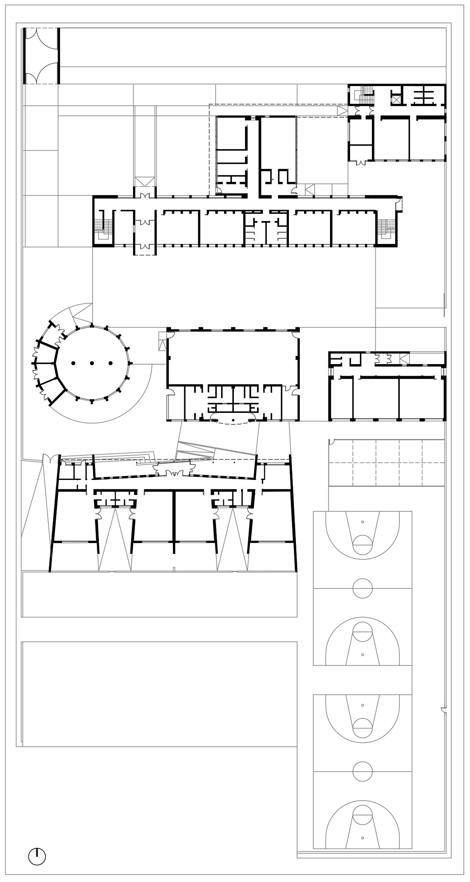 Se trata de una rehabilitación, ampliación y actualización funcional de un conjunto preexistente, a través de una intervención cuidada mediante la introductorio de volúmenes puntuales que articulan el conjunto. Por un lado, se realiza una reforma integral de las aulas existentes que se completan con unas piezas que albergan aulas, una zona administrativa,espacios de trabajos y la biblioteca del centro. Estas contrastan mediante sus formas y el color rojo, pero unifican el conjunto. La parte sur de la parcela se deja para uso deportivo.