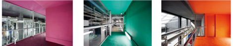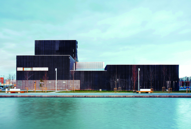 El edifico de la Central de energía (DHC) es una instalación que habitualmente se ubicaría en la periferia de la ciudad o en entornos industriales, y que en ámbitos como el Fórum 2004 de Barcelona, adopta estrategias de ocultación. Sin embargo, optamos por no esconder la instalación: no es posible enterrarla debido a la inundabilidad del emplazamiento, a la vez que manifestamos la voluntad de visibilidad y de dotarla de urbanidad.