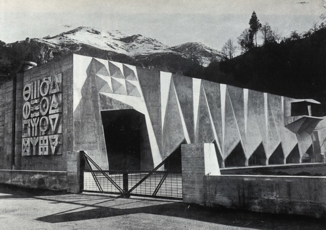La central de Proaza, en Asturias, perteneciente a Hidroeléctrica del Cantábrico, a pocas leguas de distancia desde Oviedo, está situada en el angosto valle por el que corre el río Trubia, entre laderas calizas que van cerrándose hasta formar la famosa garganta conocida por Peñas Juntas. En la construcción de esta central una vez más se ha planteado y se ha llevado a cabo con absoluta eficacia la colaboración ingeniero-arquitecto pintor-escultor.