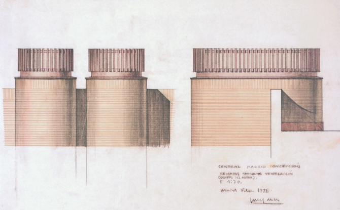 Obra muy publicada pero poco analizada, aparte de contar cómo una Ordenanza permitía sacar al exterior las necesarias torres de ventilación para asegurar el funcionamiento de los equipos de telefonía y liberar el interior de esa servidumbre técnica, y a Cano Lasso el hacer una de sus más rotundas arquitecturas, en la línea del regionalismo –más bien realismo– crítico que da lugar a la estación de seguimiento de satélites de Robledo de Chavela o al bloque de la calle Basílica.