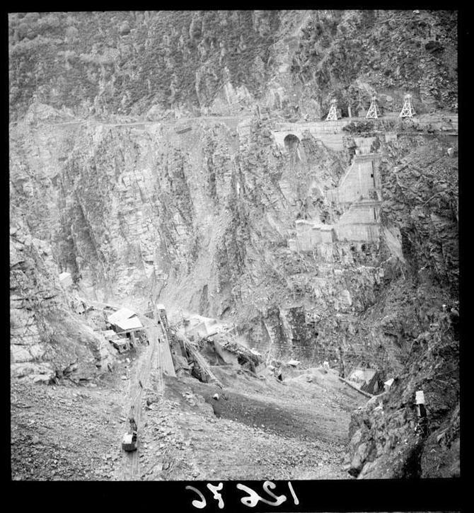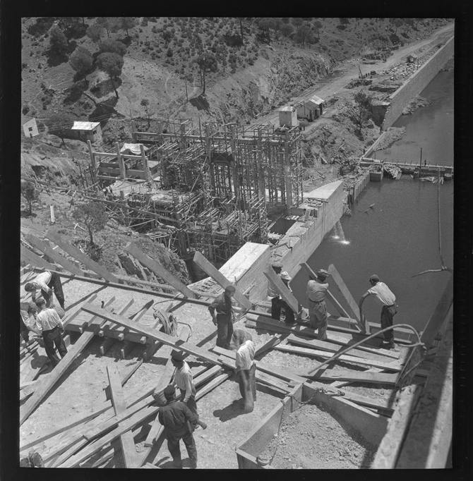 Obras del embalse y salto de agua en Salime, 1950 - Archivo Pando, IPCE, Ministerio de Cultura y Deporte. -