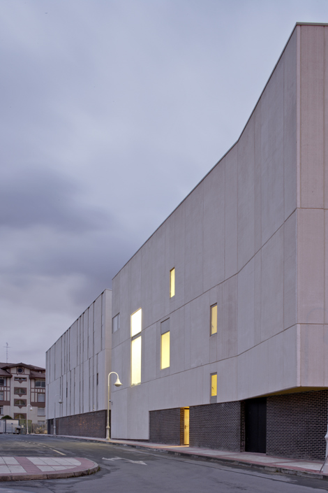 El programa incluye un auditorio, un centro joven y un conjunto de locales de tipo comercial sin uso definitivo. Por su marcado carácter institucional, y la especial significación pública que ostenta a nivel urbano, se segrega el auditorio del resto de los usos en un volumen exento y de gran compacidad. Solo el vestíbulo se abre claramente a la plaza, actuando como una prolongación de la misma, e invitando al espectáculo.