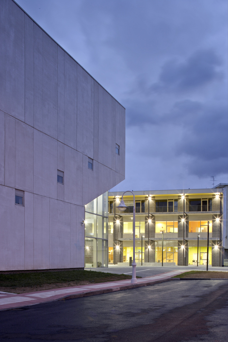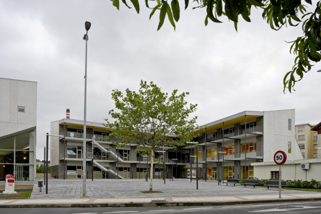 El resto de los usos que propone el programa, tanto los más específicos destinados a una población juvenil como los menos definidos de carácter privado, se organizan en una edificación porticada en forma de “L”. Su imagen ligera y permeable responde al carácter más transitorio y dinámico de los usos que alberga.