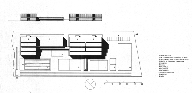 “Suele haber, en casi todos los proyectos, un factor determinante de la solución arquitectónica que se adopta. Un factor que, a veces, termina por adquirir un papel tiránico en la ordenación de sacrificios de Ruskin. En el caso del Centro de Enseñanza Media Juan XXIII, este factor ha sido la rapidez de concepción y realización: en efecto, en el mes de mayo del 64 se contaba con un terreno de una hectárea, afortunadamente horizontal, y una masa de mil niños que tenían que entrar a clase en Octubre”, explica el arquitecto en la memoria.