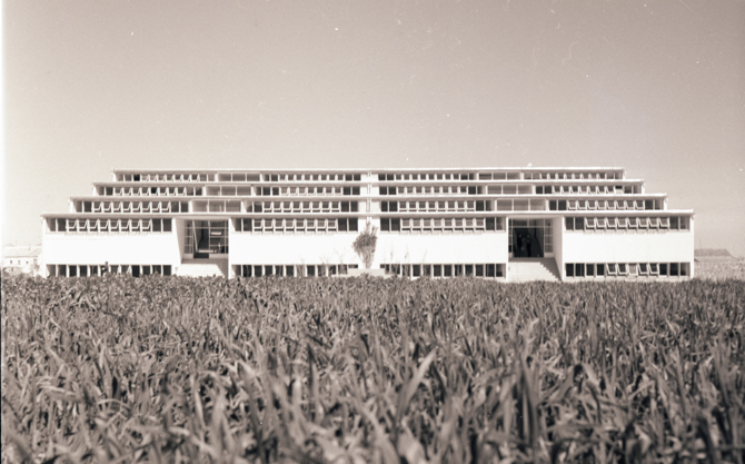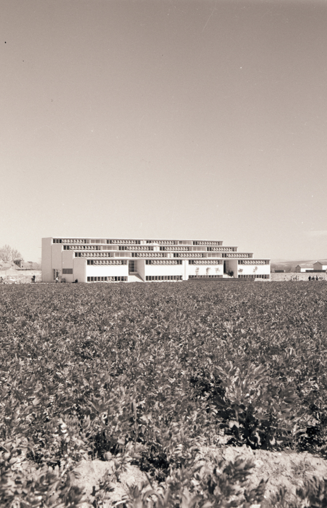 El estudio de la sección del edificio es riguroso para conseguir una orientación óptima para todas las aulas y unas circulaciones mínimas. Se eligió como orientación deseable el cuadrante naciente mediodía. La solución estructural, mediante muros portantes de ladrillo cerámico y ventanales de hormigón armado está íntimamente vinculada con el proyecto: rotundidad conceptual, rigurosa ordenación en planta, riqueza espacial y austeridad de materiales.