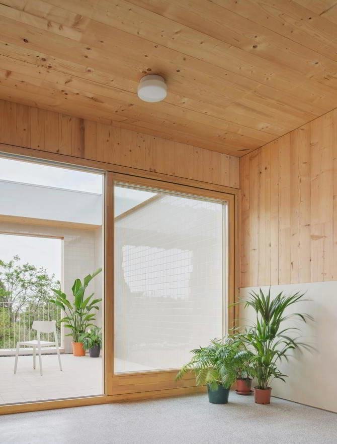 El objetivo ha sido buscar al máximo la sensación de hogar y alejarse del aspecto de un equipamiento asistencial, mediante la calidez en los materiales interiores y una escala doméstica de los espacios.