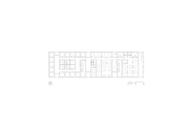 La organización funcional del centro se ha realizado por grandes paquetes programáticos que permiten un funcionamiento claro y simple tanto para los trabajadores del centro como para sus usuarios. Ambas escaleras funcionan a modo de espacios articuladores de las diferentes zonas del equipamiento.