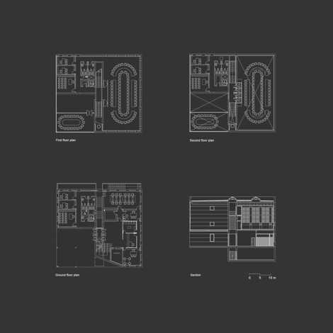 El cerramiento de piedra de estas cajas, allí donde la funcionalidad lo requiere, se transforma en vidrio para permitir que la luz penetre en el interior y la visibilidad desde el exterior. A través de estos huecos practicados en las fachadas y la cubierta, la luz y el sol penetran en los recintos interiores y se mueven libremente por ellos, creando una atmósfera de ingravidez misteriosa, auspiciada por infinitos juegos de transparencias que enriquecen los espacios y estimulan y alegran las vidas de quienes los usan y los disfrutan.