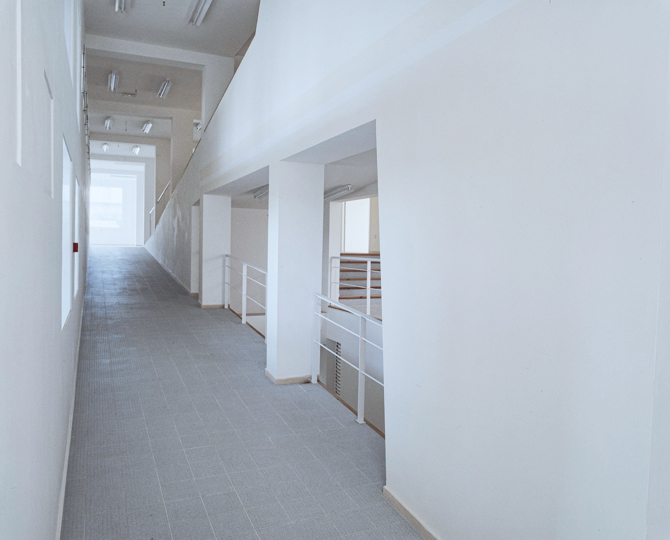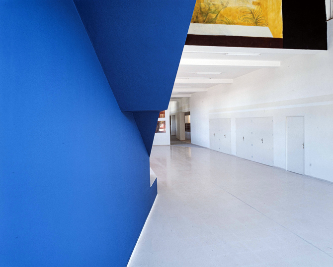 El programa se distribuye en dos partes paralelas iluminadas y ventiladas directamente por los varios abiertos en las dos fachadas laterales. No obstante, es la franja central –donde se encuentran las rampas, las escaleras y los pasillos– la que se configura como el auténtico núcleo vital del organismo.