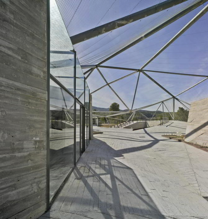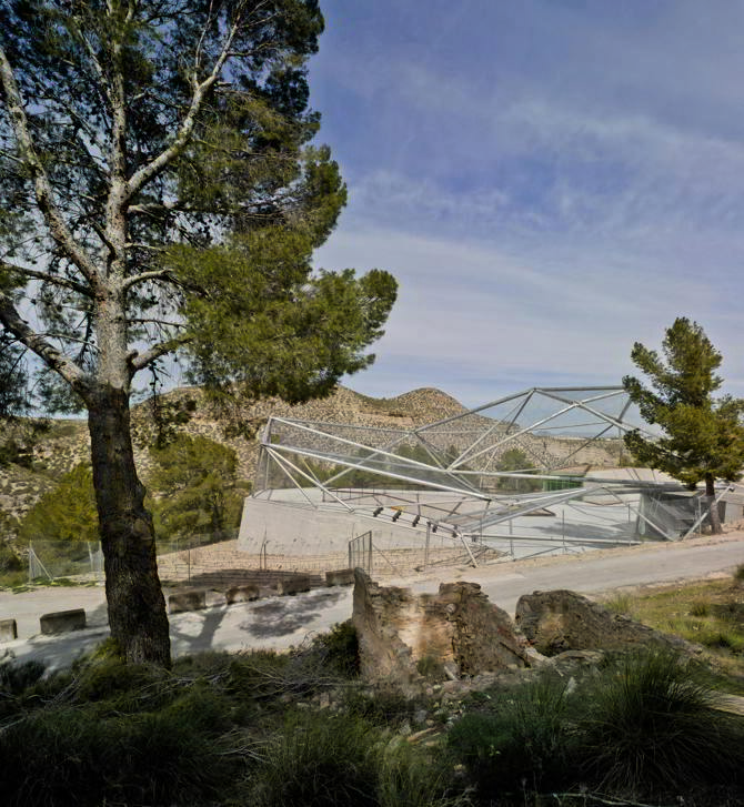 El Cañón de Almadenes es una garganta natural de varios kilómetros de longitud que el Rio Segura se empeño en formar atravesando la Sierra de la Palera para alcanzar pronto el municipio de Cieza. Es, claro, estrecha y misteriosa, con paredes laterales que superan los cien metros de altitud. Pero, además de los valores naturales propios de toda garganta, en el área hay muchos más elementos de valor: fauna abundante y diversa, simas inauditas, pinturas rupestres espectaculares, vegetación autóctona, y un largo etc. Y nuestro centro debía imaginarse como el punto de acceso a ese conocimiento y de organización del contacto con esa diversidad de experiencias.