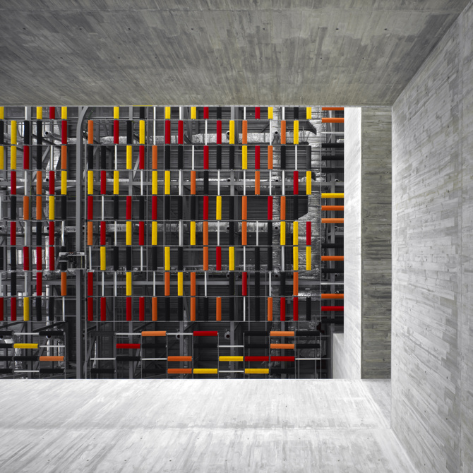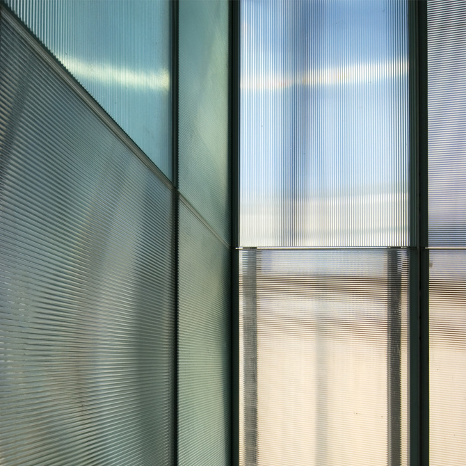 Ya no era importante la forma, si no la textura, el tacto, la escala, la materialidad, la manera en cómo se comunica a través de los sentidos cada uno de los dos edificios que forman el mismo cuerpo. La forma de hormigón propone un elemento escalar en la que lo importante es la continuidad a través de su textura. El hormigón autocompactable debido a sus propiedades es inyectado como si fuera una materia plástica homogénea que fluye con libertad dentro del molde, llegando a rellenar perfectamente zonas de intenso armado. El vidrio del cerramiento busca expresar la plasticidad del material, en el estado en el que el vidrio es una masa informe, a través de los vidrios impresos. Se desarrolló uno cuyo diseño fue realizado para difuminar la luz que lo atraviesa, y descomponer las imágenes por la refracción. Un proyecto que trabaja en la dualidad radical localiza el problema en el punto en donde concurren las diferentes estructuras. Para conservar el orden aditivo de los volúmenes y para mantener el propósito de que todos los vidrios fuesen iguales, las vigas se fijan lateralmente a los pilares metálicos, a través de una solución importada de los puentes mixtos acero-hormigón. La absorción de esfuerzo por razón de la rasante a través de múltiples conectores que solidarizan vigas y pilares importa hacia la arquitectura interesantes y económicas soluciones de ingeniería que permiten ampliar los ámbitos hacia nuevas libertades en el diseño, más allá del clásico esquema de apoyo-sobre-apoyo.