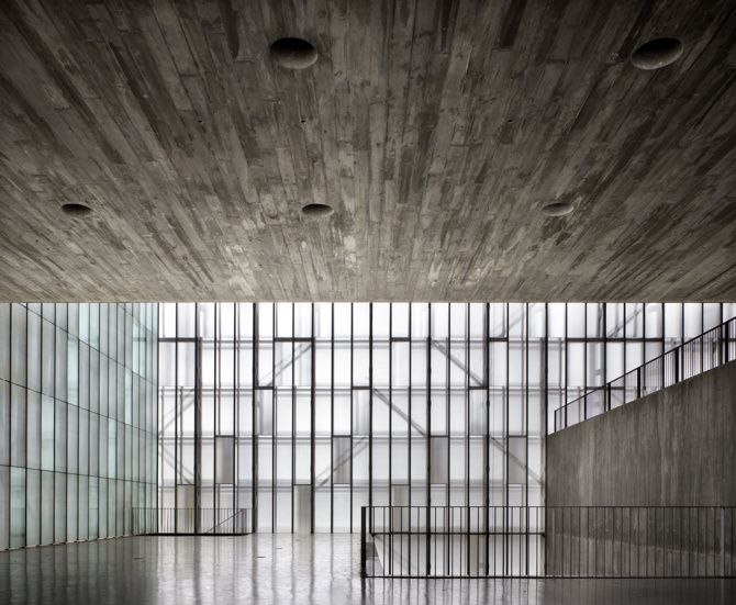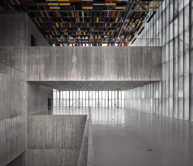 El programa requería un Conservatorio de Danza, muy definido por su propia funcionalidad y normativa, y un Museo para una colección inexistente. De esta dualidad impuesta surge la pregunta de si sería posible construir dos edificios en uno, dos programas e identidades que manteniendo su independencia fuesen capaces de alumbrar un ensayo. Se trabaja primeramente sobre el programa determinado, abriéndolo y esponjándolo para entremezclarlo con el otro. En realidad, da un poco igual cuál sea la forma que surja, lo importante es formar. Formar, como acción que establece la diferencia entre trabajar con lo sólido, lo concreto, lo cerrado y limitado que traía el Conservatorio de Danza, y lo abierto, difuso e imprevisible que aportaba el Museo. Finalmente, el Conservatorio será una forma precisa de hormigón, y todo lo demás, el espacio de alrededor, de encima, de debajo, de lado, el Museo. Habría muchas cosas que contar sobre este proyecto, pero la cuestión de esta dualidad entre lo que tiene forma y lo que no, fue la que tuteló toda la toma de decisiones posteriores.