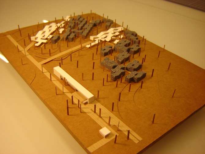 El agua y la vegetación nos acompañan y colonizan la parcela, en un intento de insinuación más que de camuflaje de la propuesta planteada.
