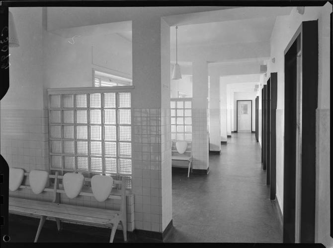 En segunda planta están las consultas de especialidades de cabeza, la agencia de asegurados y oficinas de la dirección e inspección médica. En tercera planta, una pequeña enfermería para casos de urgencia, y los servicios de lencería y lavaderos del ambulatorio y una vivienda para el conserje.