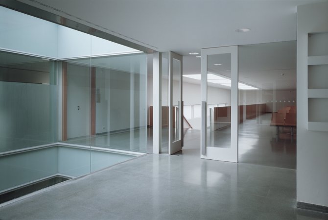 Los interiores procuran ser lo más neutros posible, dejando que sea la configuración volumétrica de los distintos espacios, la sección de estos y su iluminación los que hablen por sí mismos.