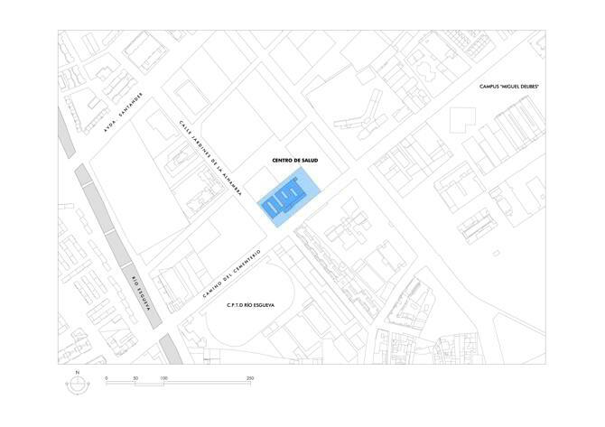 El Centro de Salud se localiza en el antiguo Prado de La Magdalena, en una parcela junto al Camino del Cementerio del Carmen, camino tradicional bordeado por cipreses, imagen apacible y de lento discurso que se viera hace años interrumpido por la ejecución de la ronda interior de la ciudad.