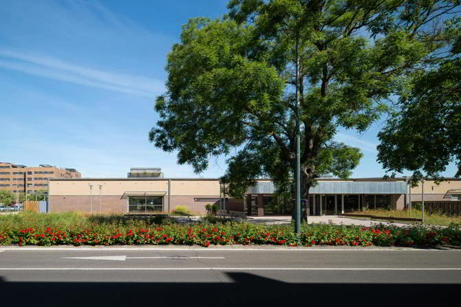 La morfología y dimensión de la parcela determinaron la realización de una edificación extendida sobre una planta rectangular, de una sola altura, con claro dominio de la dimensión horizontal que expresa la voluntad de una serena inserción del edificio en su contexto.