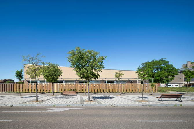 Los patios son, pues elementos protagonistas en la configuración del Centro de Salud, espacios cotidianos, tradicionales cuya capacidad compositiva nos ayuda a resolver adecuadamente el proyecto consiguiendo la creación de una ambientación amable, de bienestar, para los usuarios del Centro de Salud. La parcela, en su perímetro, queda delimitada por muros de fábrica de ladrillo con las parcelas vecinas y por vallados, más permeables visualmente, de tablones y rollizos de madera en sus límites con las calles colindantes, cuyo agreste carácter desea evocar el campo, el antiguo espacio rural de huertas que fuera el Prado de La Magdalena, ahora ya inserto en el medio urbano.