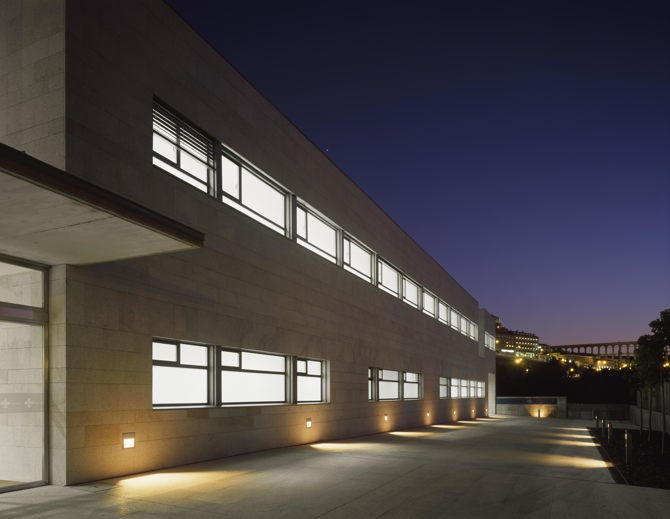 Atendiendo a estas características del lugar, se plantea un edificio de perfil bajo, y por tanto extenso, que de respuesta a tan distinta situación. Por el lado superior a la calle Vía Roma, como vía de acceso rápido y densa circulación rodada, con una perspectiva del acueducto y de la parte alta de la ciudad, incomparable, que el proyecto asume mantener. Y por otro, la zona baja, insertada en el barrio anteriormente descrito. Un muro de piedra perforado, en referencia al trabajo de los canteros, bajo y largo, es la fachada a la Vía Roma, que enfatiza la perspectiva de la ciudad, escondiendo tras él, al centro de salud, edificio que se resuelve entre el talud tras el muro y las magníficas vistas de la ciudad y el valle.