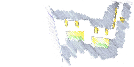 El primer objetivo ha sido generar en el interior del solar una variada secuencia de espacios urbanos que, enlazados por un pasaje interior, permitan relacionar la entrada por la calle Lucano con la de la calle San Fernando. La presencia de los restos arqueológicos que han de ponerse en valor da más pertinencia a este argumento, ya que el visitante no solo recorrerá la planta baja del solar en dirección al acceso al Centro de Salud sino también para encontrar un remanso para la contemplación e interpretación de las ruinas.