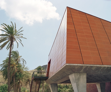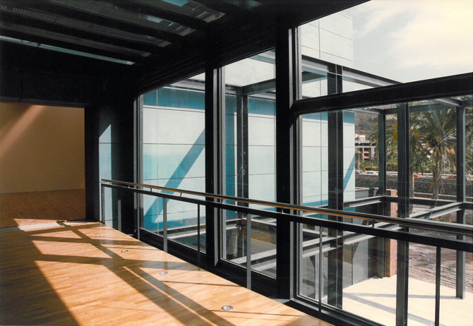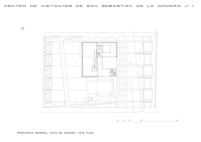 El elemento fundamental en el proyecto es el recorrido definido por la rampa-pasarela, una línea continua que se eleva y atraviesa el edificio. Su forma se evoca por que la orografía de la isla, que está marcada por un macizo central surcado por un conjunto de profundos barrancos, imponiendo el rodeo como forma de recorrido. Atravesando el edificio, la secuencia espacial cambia de naturaleza a cada paso y abarca desde una apertura máxima hasta la completa oscuridad, terminando bruscamente a través de una puerta que se abre hacia el sur, frente a la bahía.