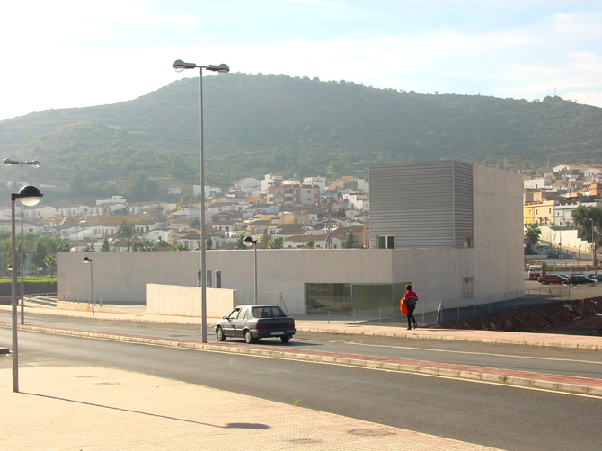 La piscina de La Vall d'Uixó fue la primera fase y única construida del proyecto ganador del concurso “Complejo deportivo en La Vall d'Uixó” convocado en junio de 1997. Al nuevo complejo debía incorporarse el pabellón deportivo existente en la parcela de actuación. Decidimos integrarlo en la propuesta junto al nuevo polideportivo, de tal modo que, apoyándonos en sus bloques auxiliares, podríamos desarrollar los espacios conjuntos de control, circulaciones y servicios públicos que envolvieran a ambos pabellones. De este modo la disposición de las pistas nos permitía obtener una sucesión de tres campos deportivos: el existente, el nuevo pabellón y las pistas al aire libre. El bloque de la piscina, con diferente gestión, se separaría de los pabellones, creando un nuevo espacio abierto de relación entre los equipamientos del complejo y cerrando la parcela al sur.