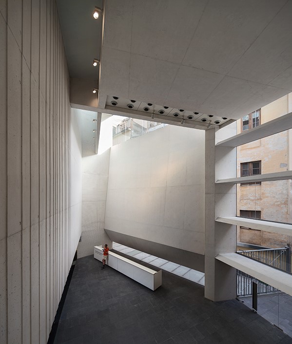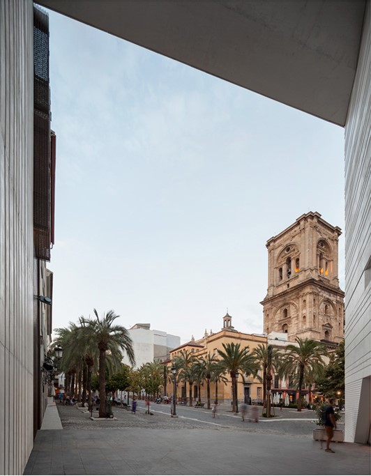 La contundencia en la imagen proviene, en cambio, de dar forma al vacío resultante: el umbral, el pasaje. El edificio establece una relación natural y continua con el centro histórico de Granada a través de diferentes escalas de intervención: